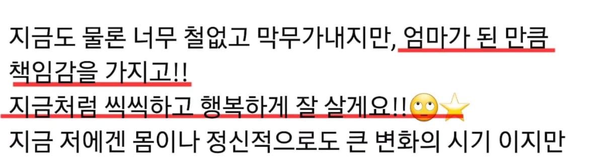 - 또한 엄마가 된 만큼 책임감을 가지고 씩씩하고 행복하게 잘 살겠다고 말했습니다.