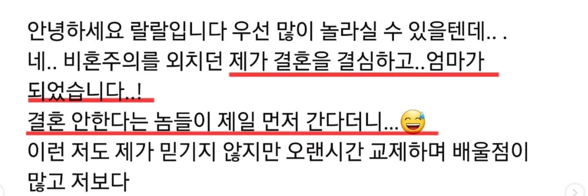 - 랄랄의 결혼과 임신에 대해 이렇게 생각합니다. 랄랄에게 축하와 응원의 메시지를 보내주세요. 😊